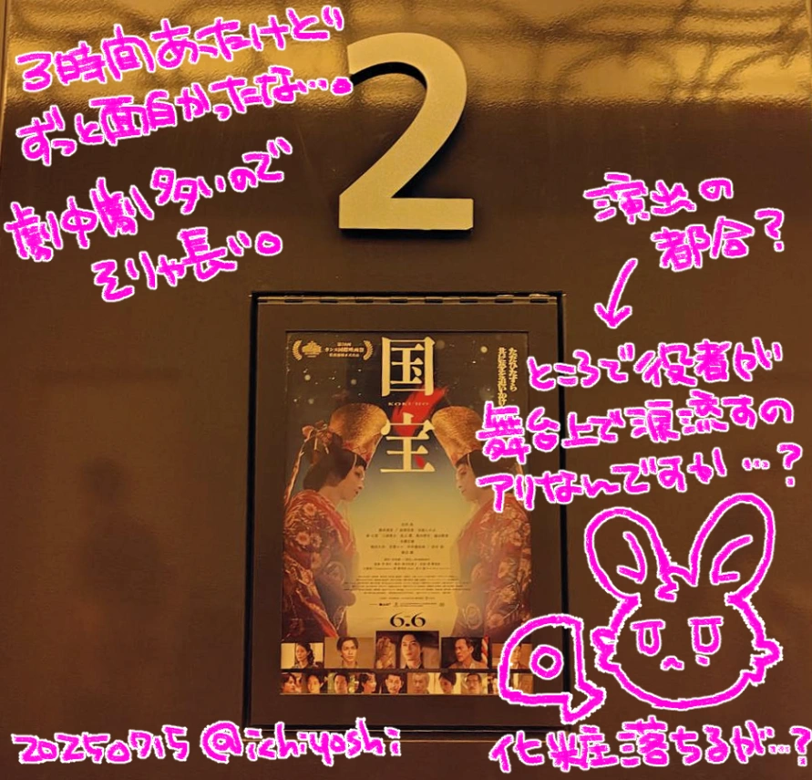 ところで「一ヶ所泣いた(観た人はすぐ分かると思う)」って感想見かけたんだけど結構いろんなポイントなかった???私は俊くんが喜久ちゃんの化粧をしてあげるとこが一番泣けました。だってお父さんの代わりに舞台に立ちたかったじゃんね?(実力不足を薄々感じてたにしても)