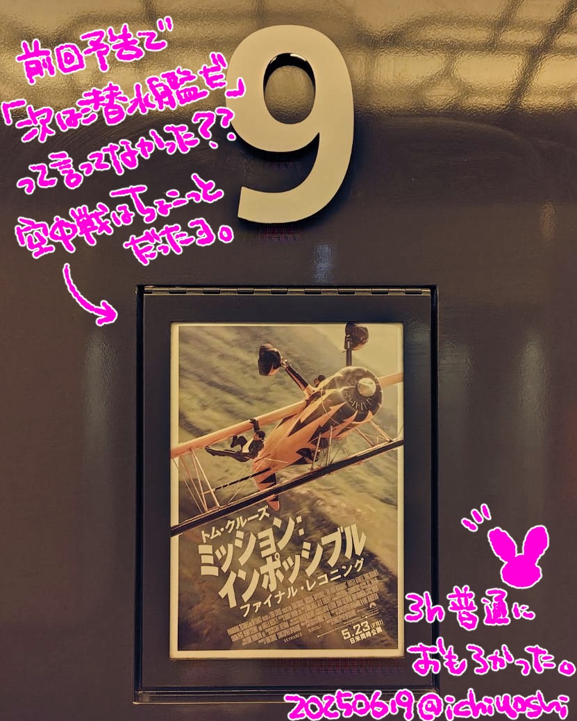 一応前回のデッドレコニングを事前に観なおして挑んだんですけど結局開幕何言ってるのか分からんwwwって映画館で笑ってしまった。いやまあ雰囲気で観てたら途中からわかったけど。ていうか理屈は分からんけどやることはしっかり明示されるのは見てて分かりやすくていいなって思いました。チャンスは0.1秒とか10秒で走れとかそういう。まあそんなんだから後から思い出すとアクションしか覚えてないんすけど(台無し)