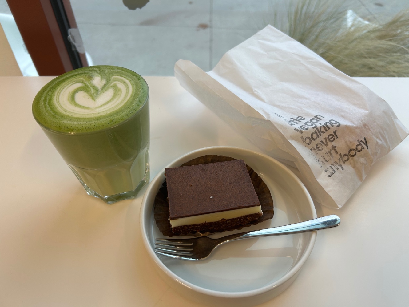 ・カフェではベーグルと抹茶ラテ(本当はホットチョコレートが飲みたかったんだけど、発音が悪いからか聞き取ってもらえなかった涙)あとカナダ名物のナナイモバーを初めて食べてみました