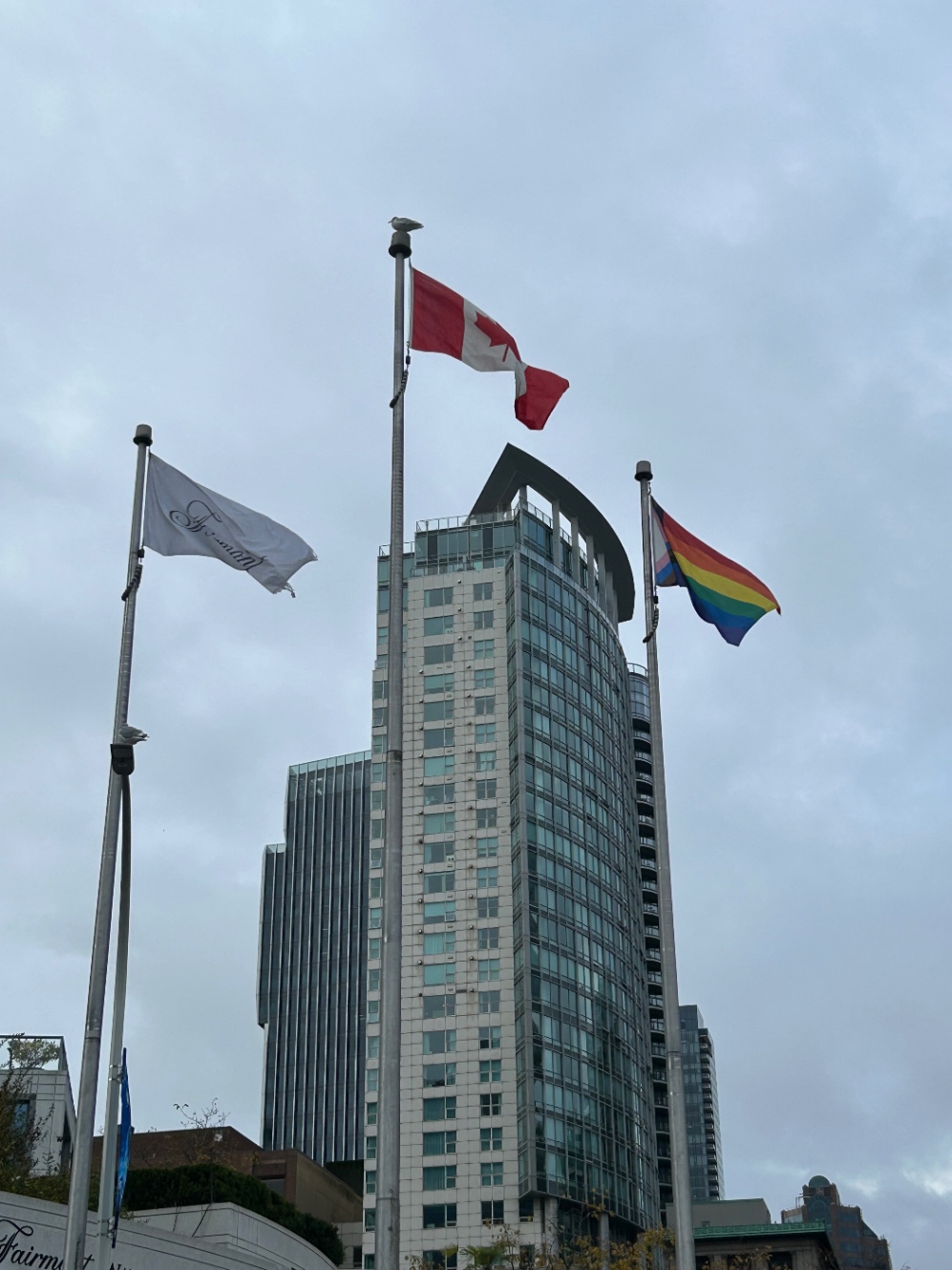 ・もうひとつの旗は何の旗だか分からないけど、カナダ国旗の隣にレインボーフラッグが掲げてあるの、すごいこと