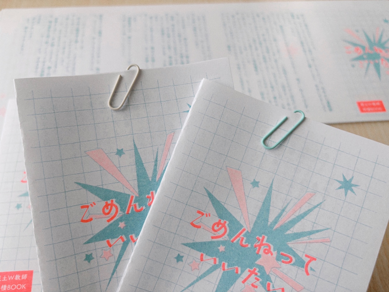 教師パロのSSなので、表紙もそれっぽくノートのイメージ。蛇腹なのでびらーんとなってしまって渡すときもたつきそうだったので、クリップで留めました。