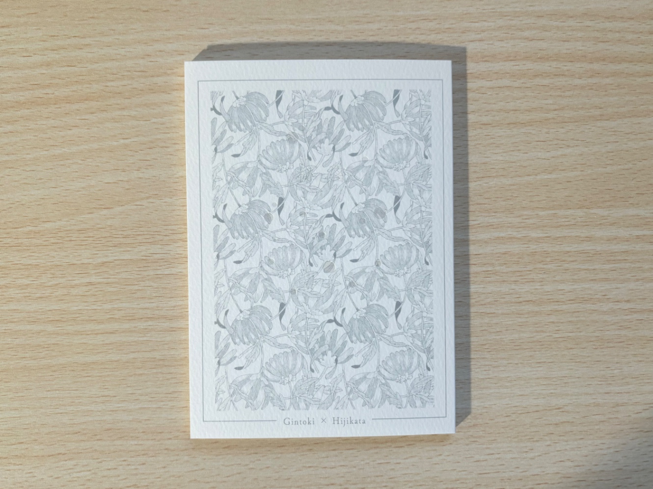 こうして傾けると浮かび上がります。シルバーのインク一色の印刷の上に半透明のパール箔を乗せているので、ちらっと光ってかわいいです。見えすぎても見えなすぎても微妙なので心配でしたが、イメージ通りにできてよかったです。表紙用紙のマーメイドは、シルバーインクとパール箔を使うので紙自体はキラキラして欲しくなかったのと、ふかふかした紙を使うと箔がしっかり押されている感じが出ていいかなと思って選びました。以前別の本でも使ったことがあり、触ったときの質感もとても好きなので自分の中で迷ったときに選ぶ定番用紙になっています。153kgで表紙に何も書かない場合、本文が透けてしまうことがあるので注意です。前回使ったときは裏表紙から奥付が透けてしまってました……。なので今回は終わりに白紙を一枚挟んでいます。シンプルな装丁が好きで裏表紙はなにも書かないとかよくあるので、気をつけたいです。