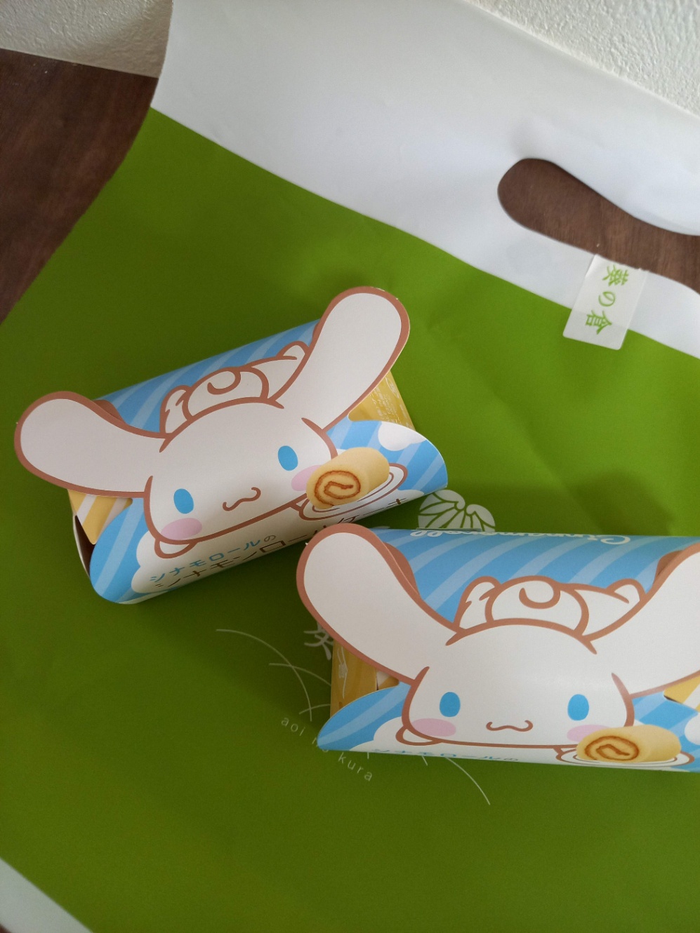 葵の蔵のシナモロールのシナモンロールケーキ。インスタで見かけて気になって買いにいっちゃいました。田舎だけど売っていてよかった~。可愛いのはパッケージだけで中身は普通にロールケーキです。パッケージの一番長い所が8センチ位。3口ぐらいで食べ終えたような……これ、さすがシナモンロールケーキというだけあって、シナモン味がしっかりしていました。故にシナモンスキー向けでもあります。 お値段 300円(税込)