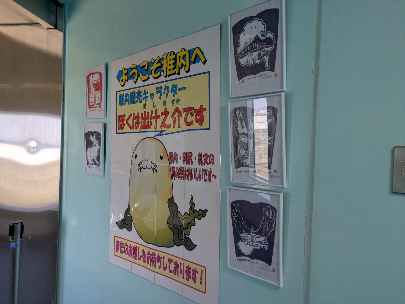 謎のキャラクタにお出迎えされました。とりあえず駅に向かったあと、特急に乗り込んで豊富に向かいます。