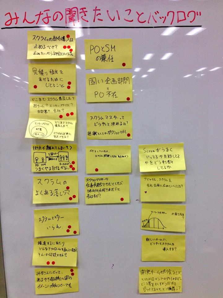 Scrum Master’s Nightが初めて開催されたのは、2014年2月20日のことでした。初回のマーケットプレイスを見てみると、今と変わらないようなテーマが並んでいます。参加者のブログ記事も残っていて、スクラムマスターたちがウォーターフォールの良いところを語りあう場面もあったそうです。その場で聞いてみたかったです(笑)。