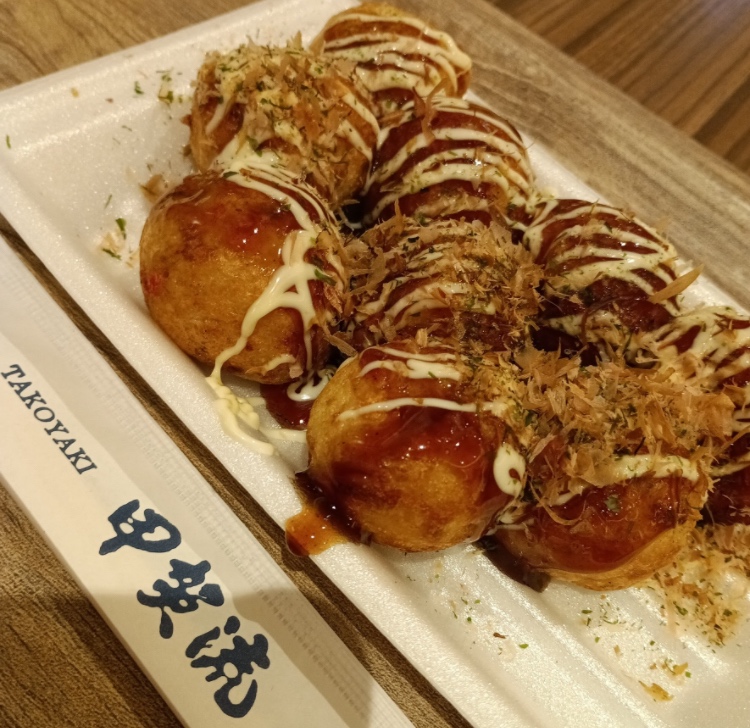 HEP5にあるたこ焼きマーケットに行った。前に並んでた外国人が困ってたから教えて(徳を積む)甲賀流を食べた。