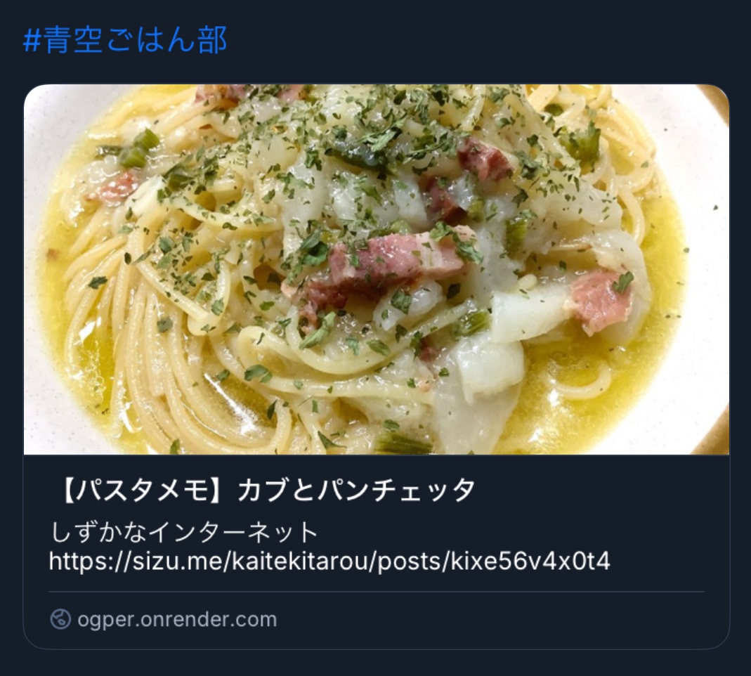 sizu.meのリンクカードは通常アイコン表示なので、OGPerを利用してOGP画像付きの短縮URLを用意する。