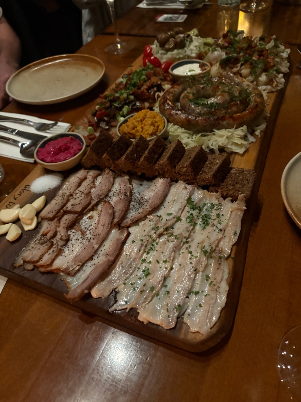 5人でお腹いっぱい!生のガーリックがあって、それを塩につけて齧ってから料理を食べるのがウクライナ流とのことだったけど生は辛かった...!