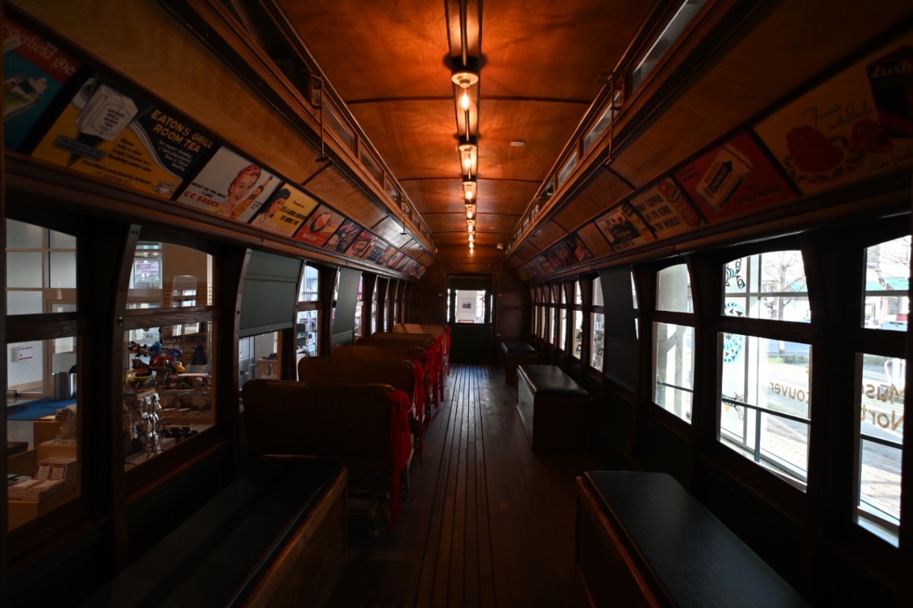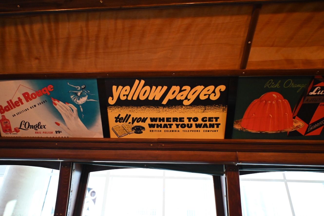 昔走っていた電車の車両。タウンページと同じっぽい当時の広告再現があって面白かった。