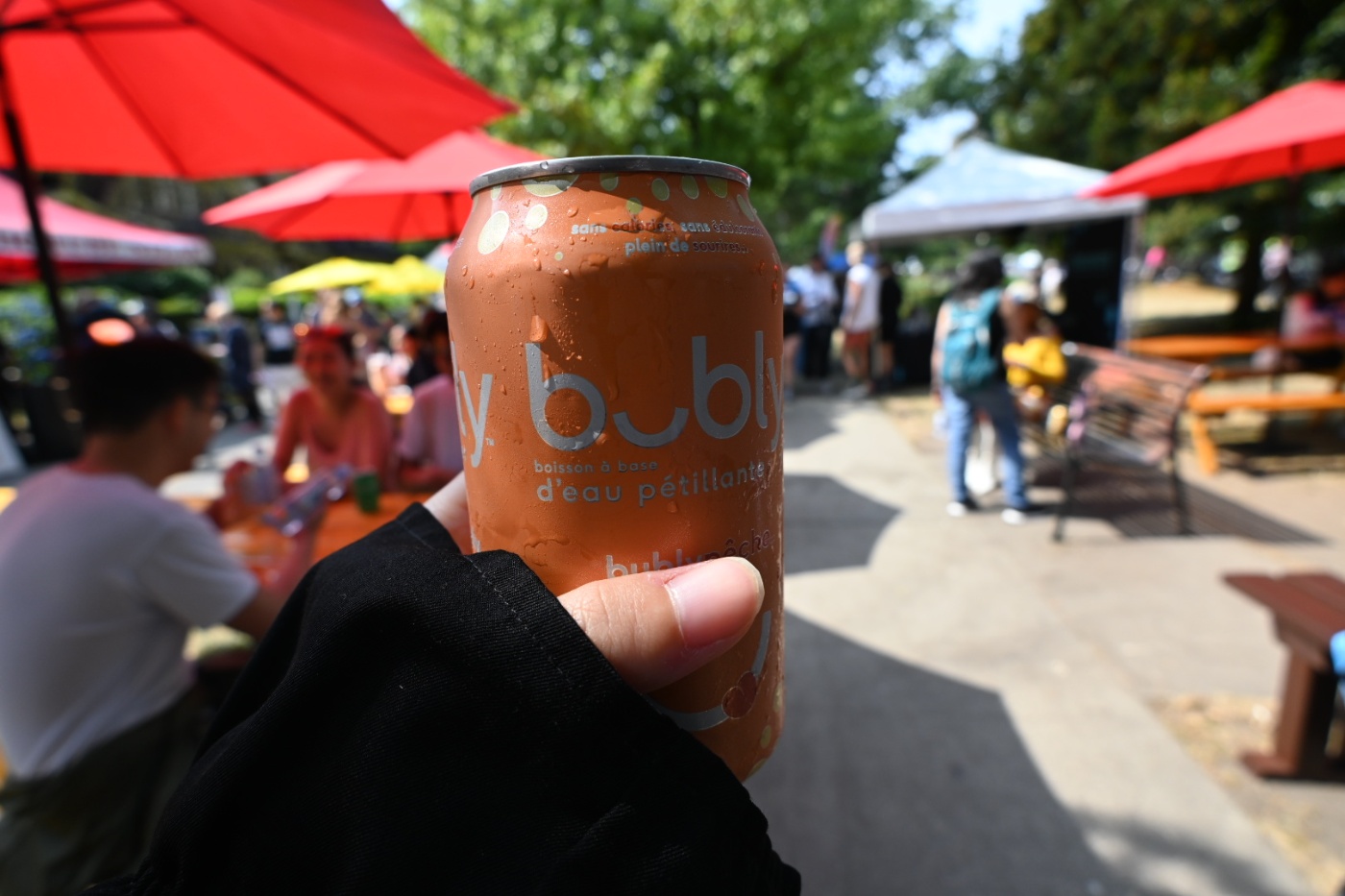 これはPride Parade関連のお祭り?で、無料で配っていたサイダー。私は長袖だけど、色味はかなり夏っぽい