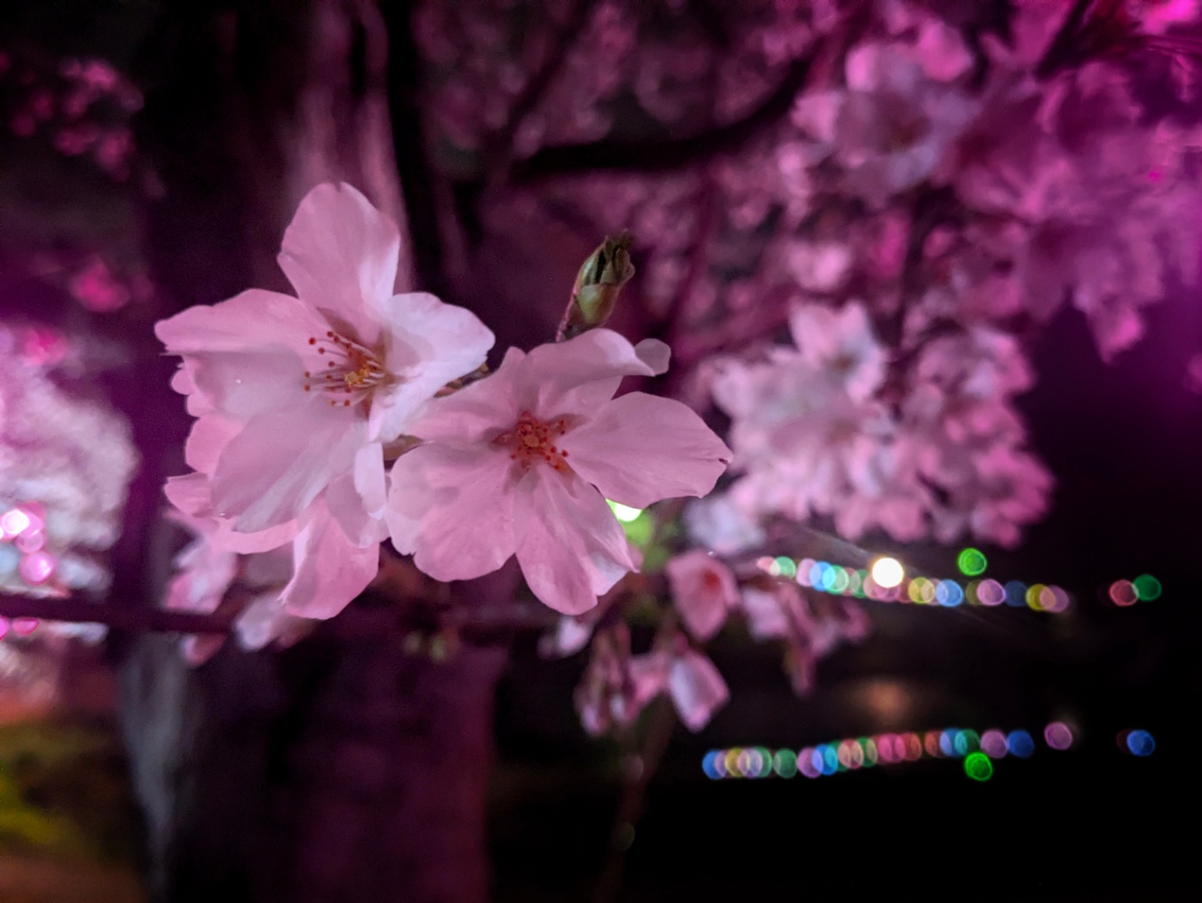 夜は夜でこのあたりではよく知られた名所へパートナーとふたりで出かけた。土日は雨予報だったので、それならとちょっと急いだ。満開ではなかったものの、かえって賑わいすぎていなくてよかった。
