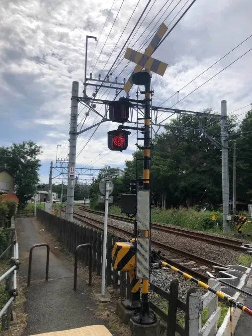 ちょい急いで漕げば渡れるくらいのタイミングで鳴り始めた踏切だが、せっかくなので止まった。
