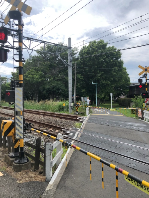 ド木陰ロードを切り裂く踏切。良すぎる。