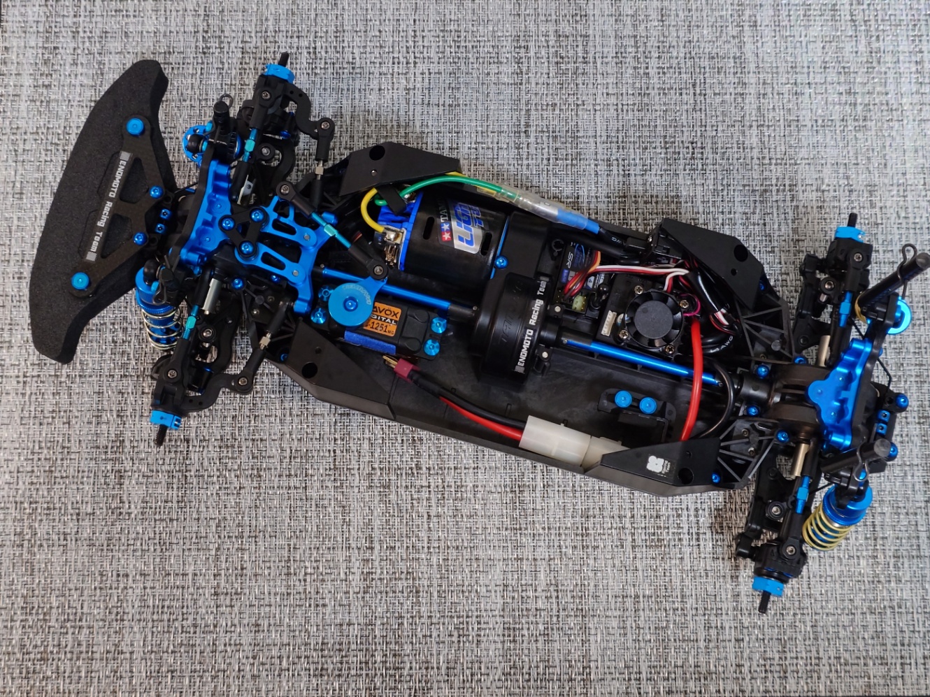 マシンは少しずつ準備していたXV-02 RS PRO。タミグラ☆フレッシュのレギュレーションに沿うように、モーターをライトチューンモーターに、ピニオンギアをキット標準の歯数以下の24Tにして準備。(XV-02 RS PROはキット標準のピニオンギアの歯数は26T)