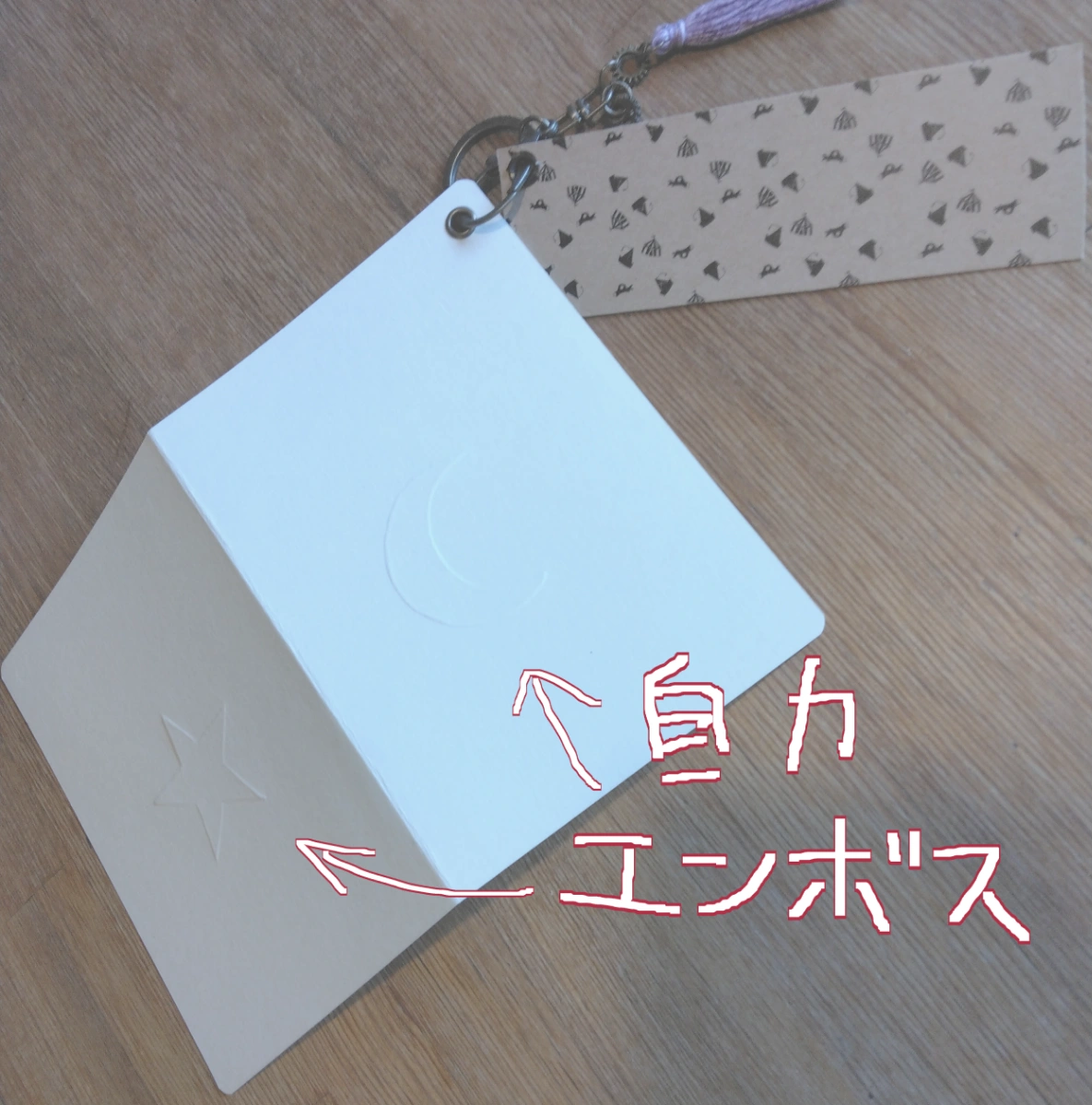 開きのカードは招待状。ここで月と星を自力エンボス加工です。手芸用の型紙写し?のペンとファイルケースにスマホライトで簡易トレス台と、家にあるものでどうにかしました。