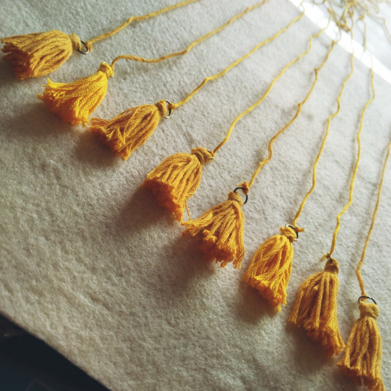 推しをイメージして。タッセルもせっせこ作りました。オタクを離れていた期間、ハンドメイドアクセサリーを趣味としてやっていたスキルと道具がここで役立ちました。人生、なにが活かせるか分からないものです。というか、今回、多趣味で生きてきた今までのスキルをかなり活かせてるので、なんにでも手を出す移り気もたまには役に立つものだと思いました。