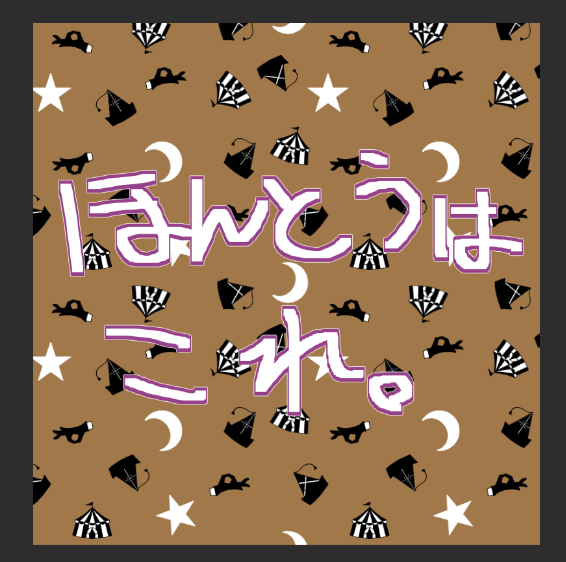 裏側の全体に推しイメージの描いたイラストを散りばめたのですが、白が印刷されないことをすこんと忘れていて、白で描いていた月と星が抜けております。黒で輪郭を描かないといけなかった。妙に空間が空いているところはそれです。でも知らなければ分からないだろうとも思います。なのでセーフセーフ。