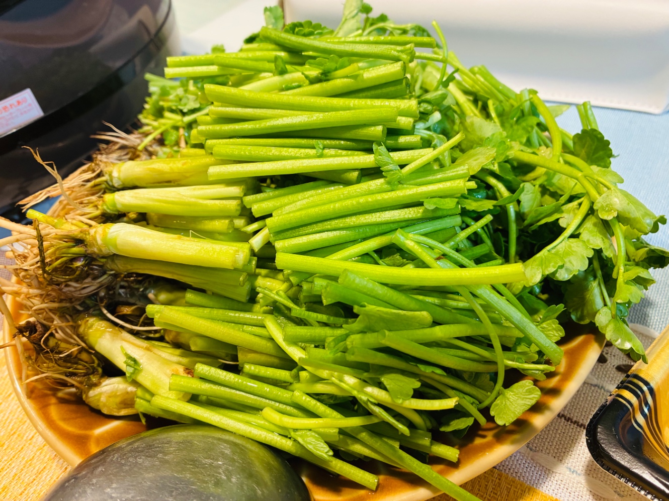 歯の治療とヨガを終えて、夜はせり鍋にした。
