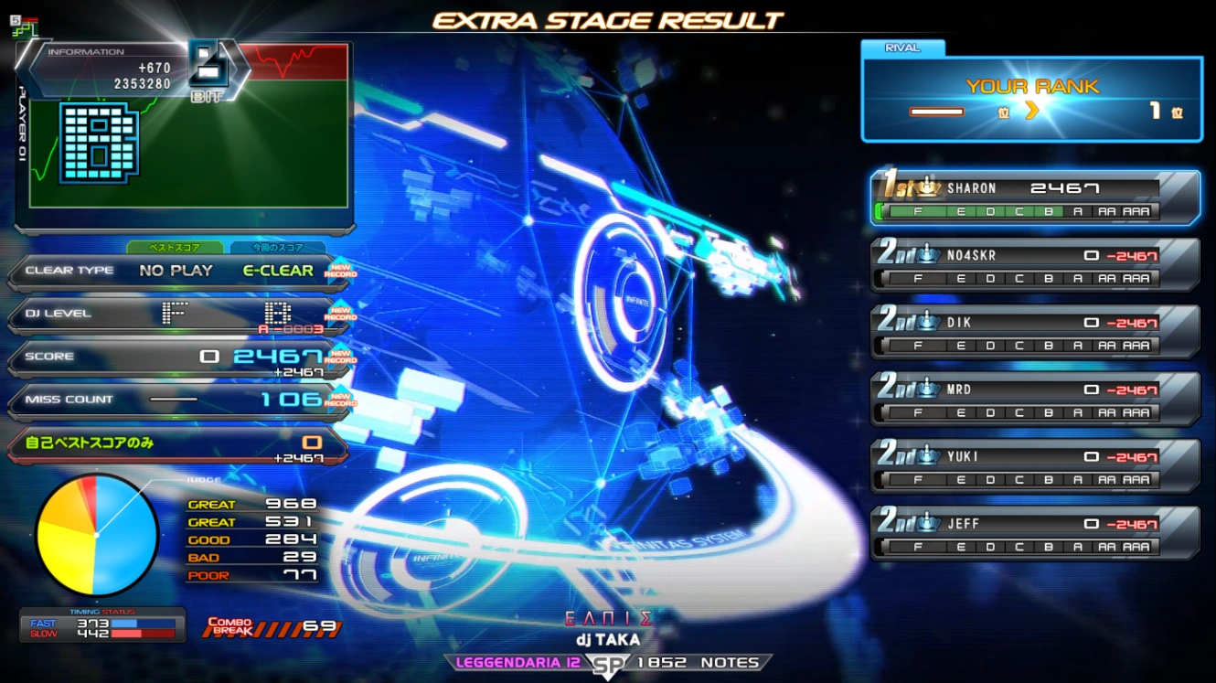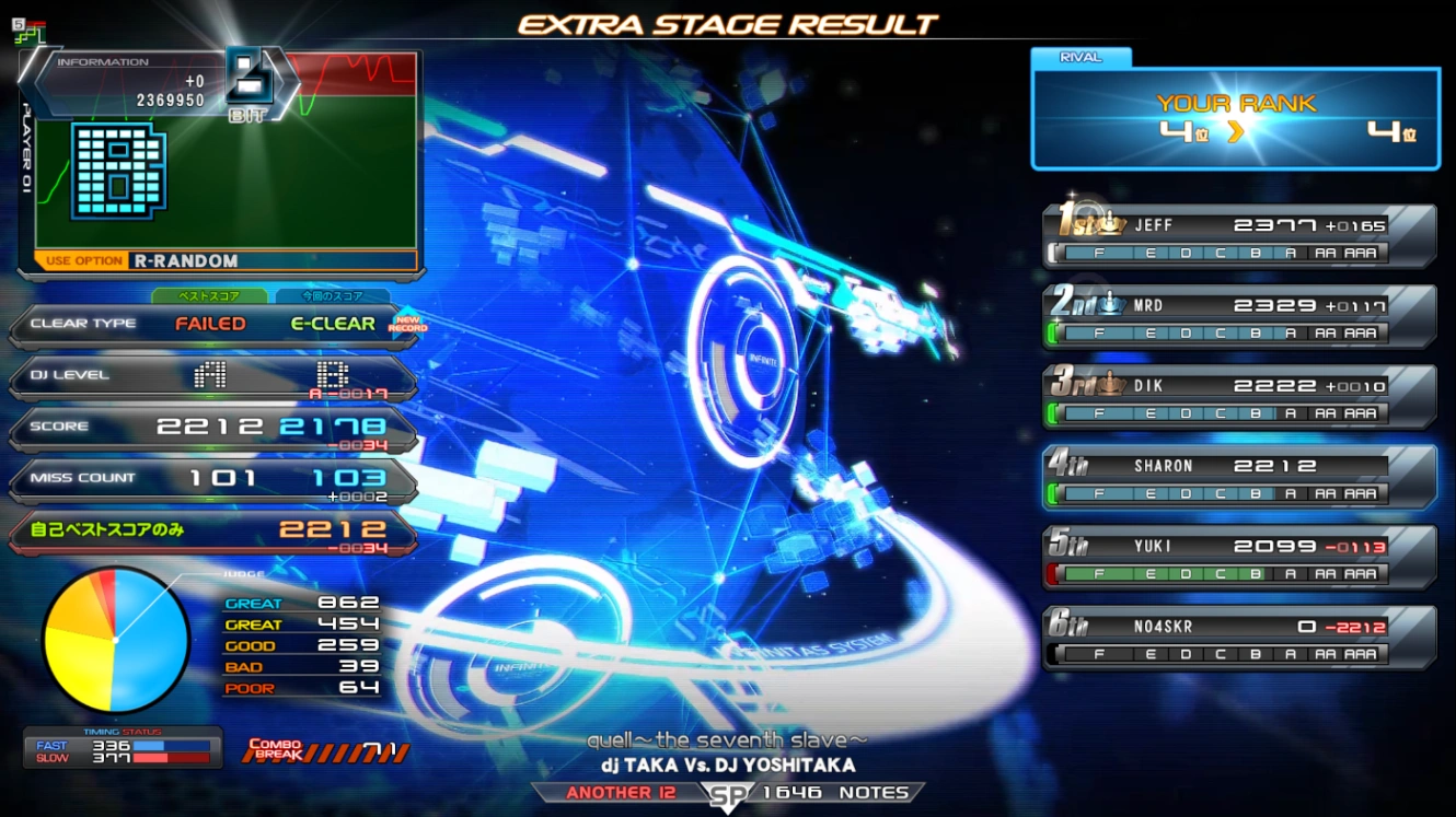 トリルと終盤の回復っぽい配置がかなり押しやすい配置を引けたのが良かったです。乱だと結構練習になりそうなので、ちょこちょこやっていきたい譜面ですね。プレミアムパスでやり放題だし。