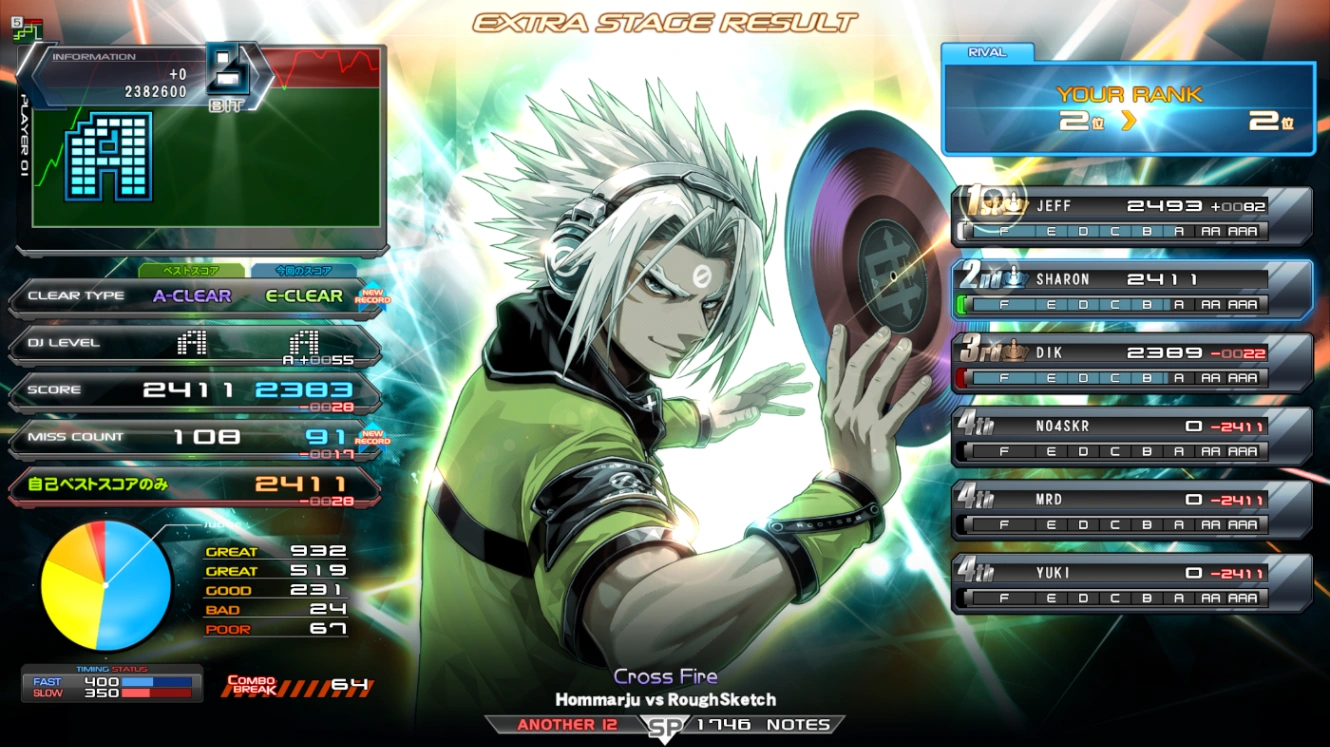 この曲、デフォ譜面だと物足りないのでもっとむずい譜面でやりたいな~と思っていたので、嬉しい追加譜面でした。譜面としても結構楽しい感じだったと思います。