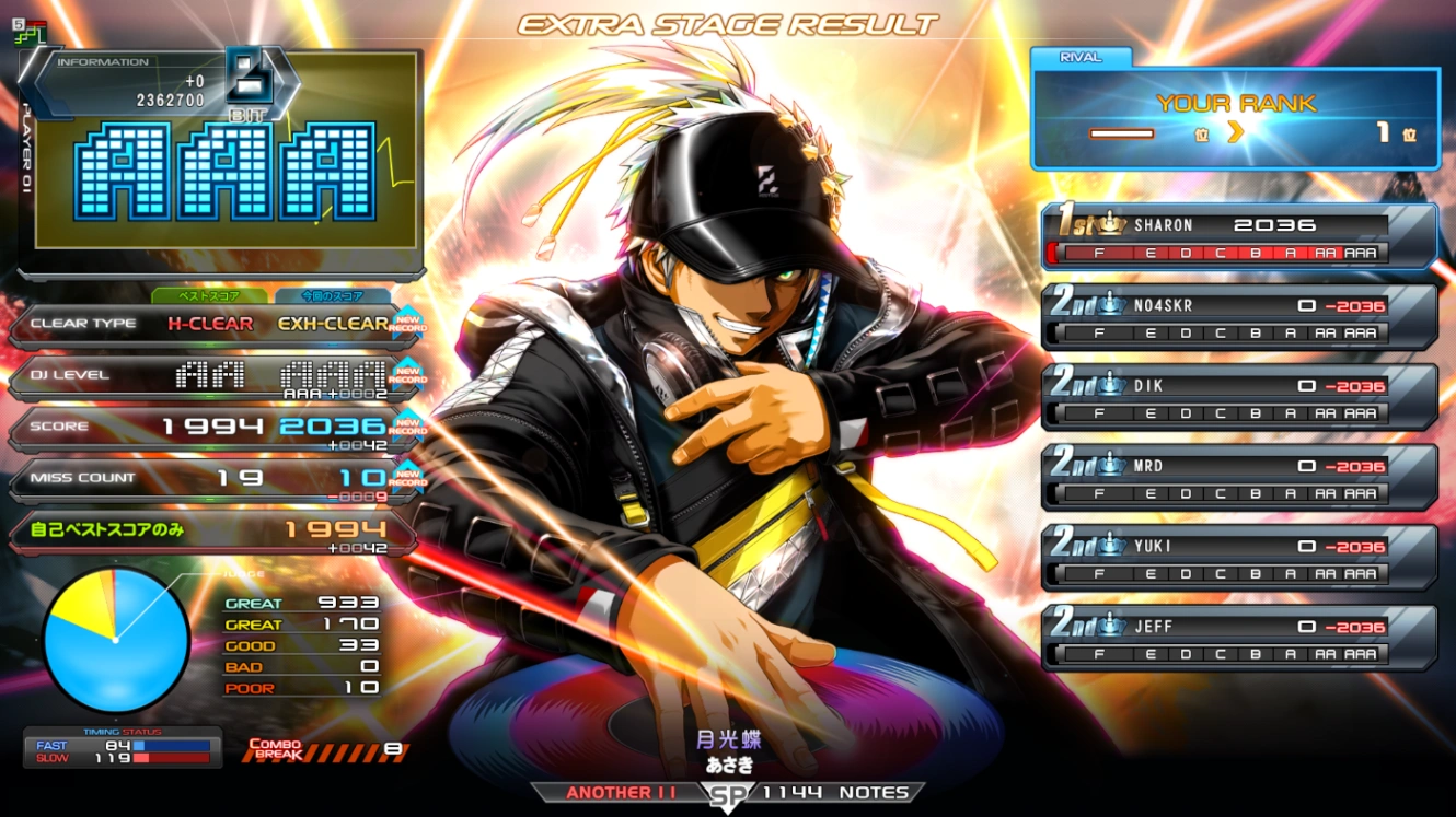 11ですが、AAA乗ったのは嬉しいのでしっかりとした収穫です。ソフランも対策がしやすいので頑張ればフルコンも狙えそうです。