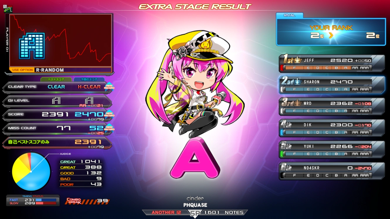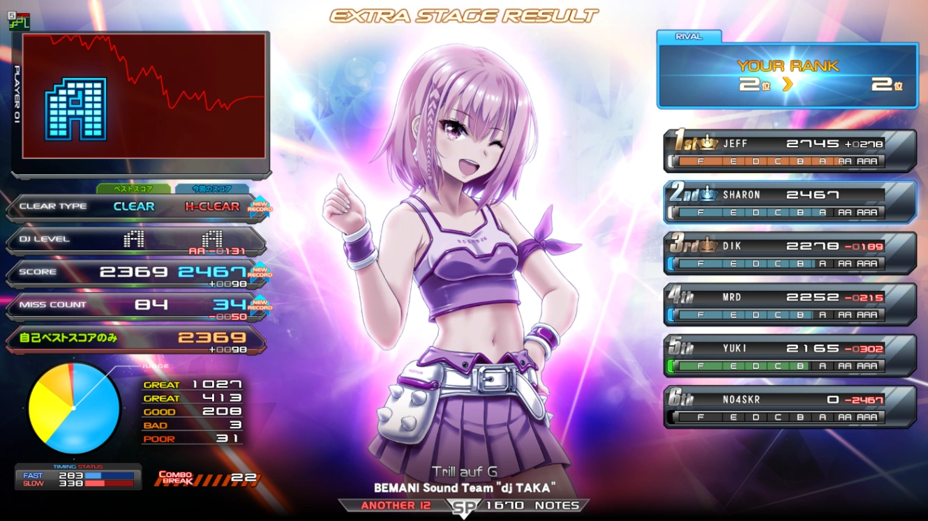 PENDUAL稼働時にACでやっていたときはイージーで精一杯な曲だったので、ハードいけると感慨深いものがあります。ラストの発狂が心臓に悪い。