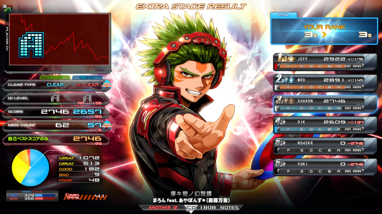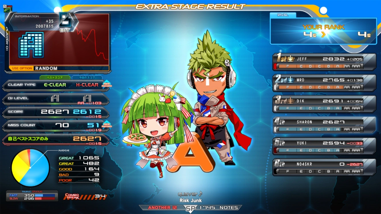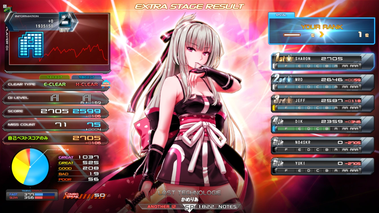 昔ACでやっていたときは比較的あっさりハードした記憶があったんですが、INFでは非常に苦戦してしまいました。乱、R乱どちらも試しましたが前半の繰り返しが全然駄目で、結局正規でハード。正規もそこだけ癖がついていてヤバかったですが。