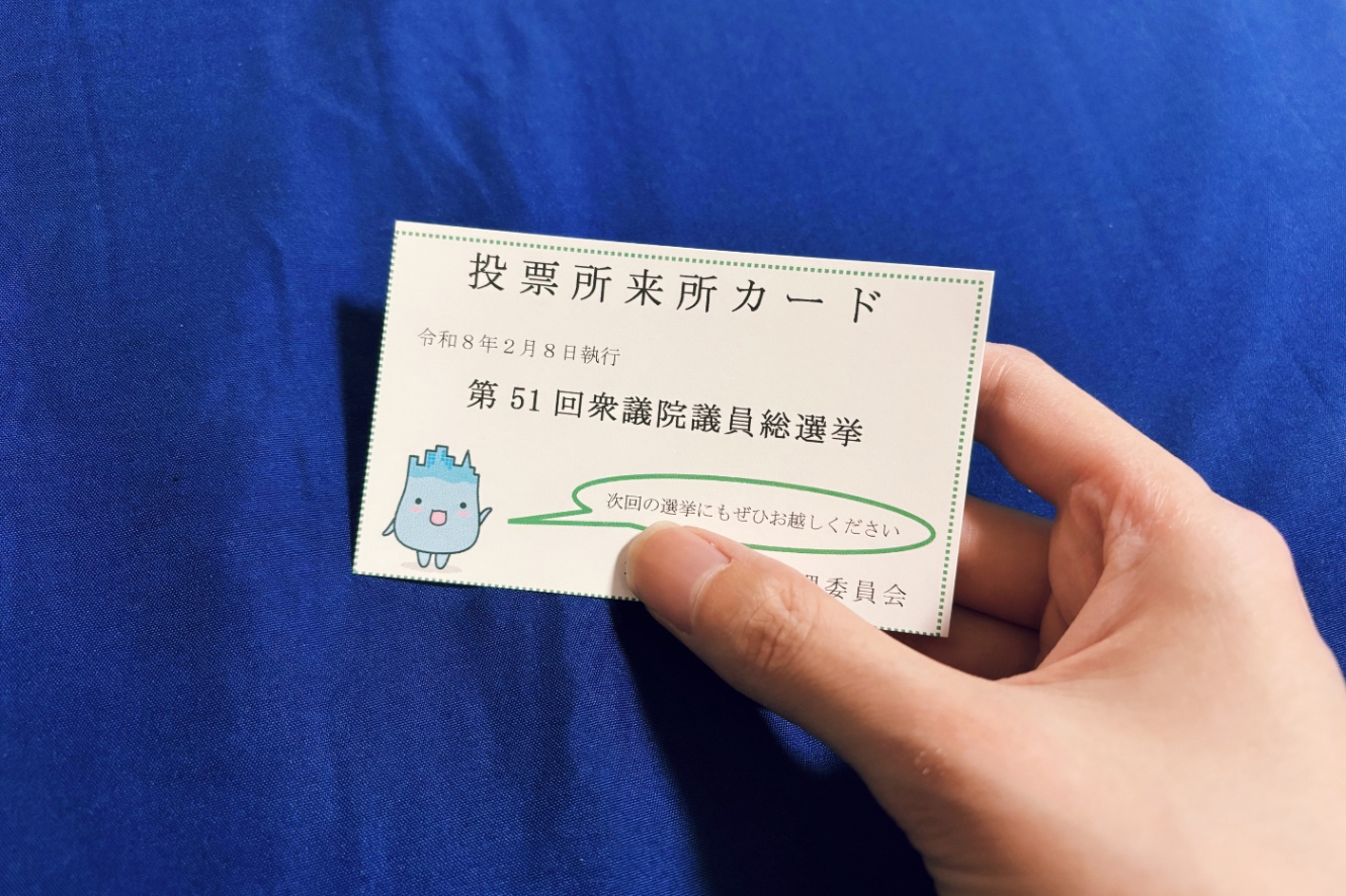 昨日会社帰りに投票に行ってきた。18時半くらいだったけど、結構人がいた。いつものように来所カードをもらって会場を後にする。やっぱりうちの町のゆるキャラが日本一かわいい。蜃気楼の見える町なので、ミラージュのミラたんです。