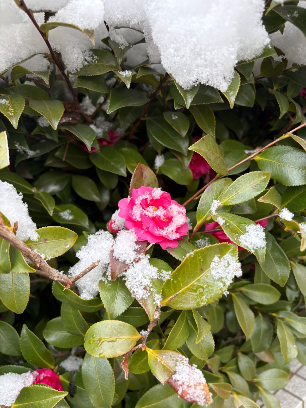 お店の近くの施設の垣根。日曜の朝、起きてベランダをのぞいたら景色が真っ白だった。水戸では雪が降るのも稀なので、積もるとなるとさらに稀少だ。お店の営業曜日なのだが、こりゃ誰も来ないなと諦めた。ただ、通販の申し込みを何件かいただいていたので「ちょっとだけ開けます」と各SNSに投稿した。