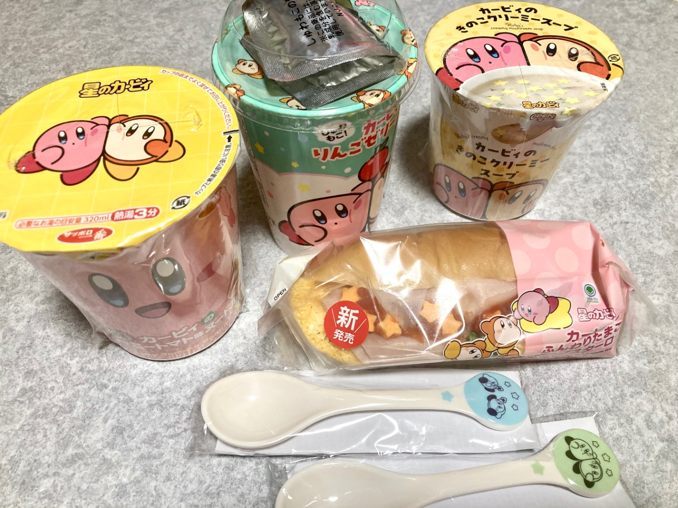最近ファミリーマートがカービィとコラボしているので夫が張り切って買ってきたやつ。オススメは写真2枚目左上のクランキー。一瞬で食べてしまった。