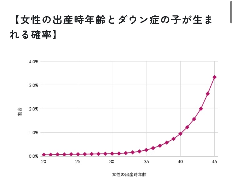 私が受けたものは『NIPT診断』というものだ。妊娠10週から受けることができる。私は今11週なのと、出生前診断はカウンセリングを受けなければならないのだけどその先生が来院するタイミングというのがあり、それが先週の土曜だった。この診断で分かることはダウン症を主とした染色体異常があるかどうか、ということだ。染色体異常が出る確率は、妊婦側の年齢が35歳以上からぐっと上がりはじめ、40歳を超えると飛躍的に上昇する。私が子を産む予定日はもう自分の誕生日が来ていて41歳になるので、先生の資料によるとダウン症の確率は69分の1くらいだった(ネットで調べたらまた確率が違っていた)。
