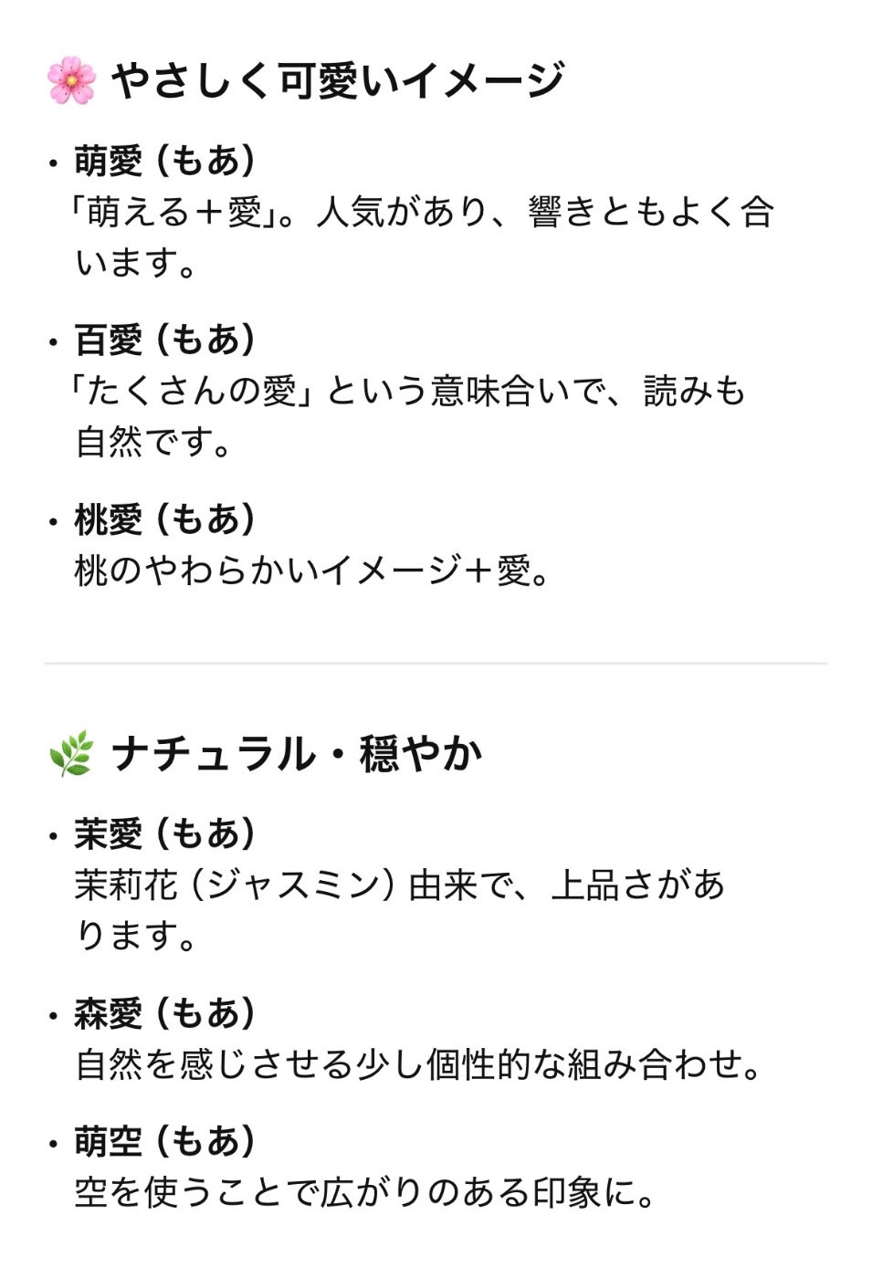 ChatGPTに漢字の案を聞いてみたら結構出てきた。百とか桃あたりミリオンライブっぽさがあってニヤニヤしてしまったな。もあ、漢字にしてみると結構いいんじゃないか?