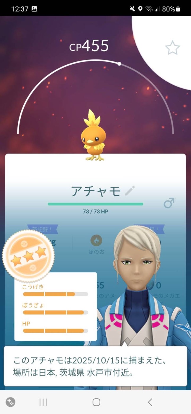 アチャモを好きになってからポケGOをゆるく再開していたんだけどなかなか巡り会えなくて。やっと!