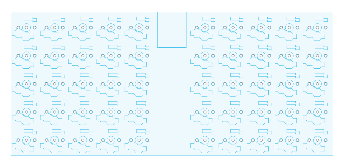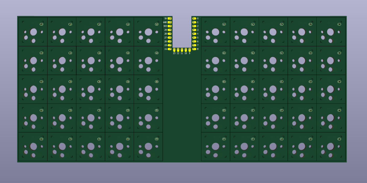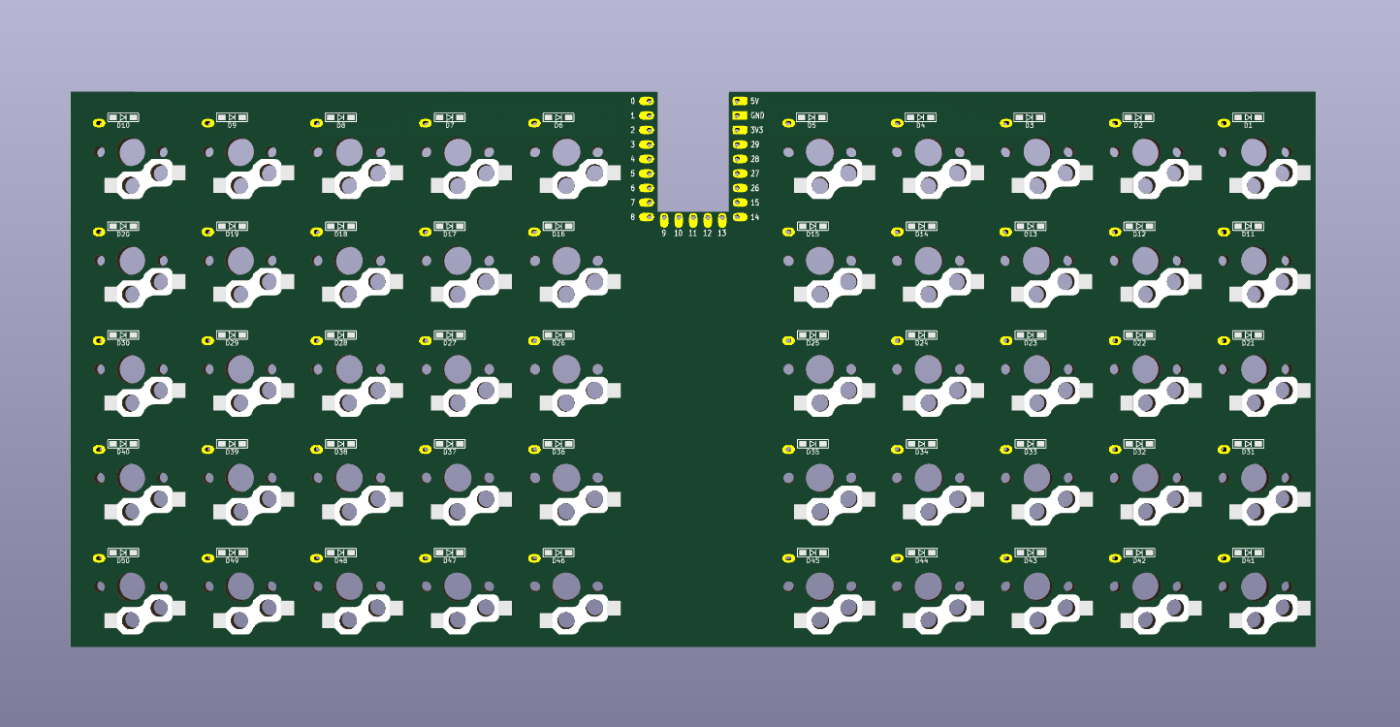 一瞬、最近、自作キーボードで増えてきた狭ピッチにすることも考えましたが、入手できるキーキャップを考えると、初心者向きにはちょっと難度があがるので、キーピッチは19.05mmの一般的なキーボードのキーピッチにしました。