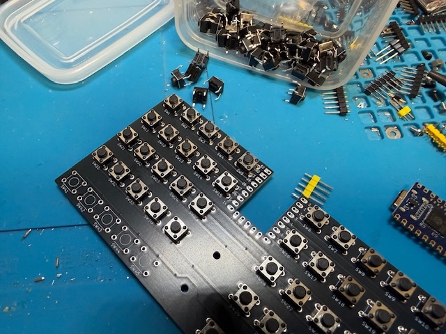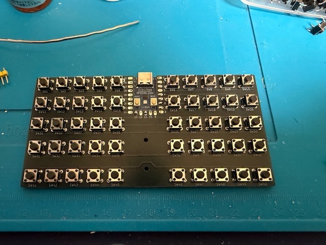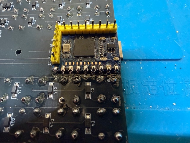 こちらは、スイッチソケット50個(はんだ付け100箇所)とRP2040-Zeroの端子部分をはんだ付けしました。cool650miniよりも、はんだ付け箇所が少ないので、早く終わりました。