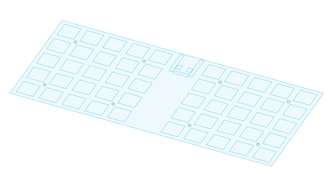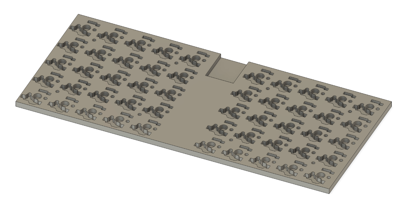 FUSIONでここから、ケースの下部分を作ります。窪んでいる部分は、PCB下面にはんだ付けされるスイッチソケットやダイオードが配置される部分になります。こうすることで、PCB下面の空間を限りなく減らし、反響音が減るかもしれないと考えました。