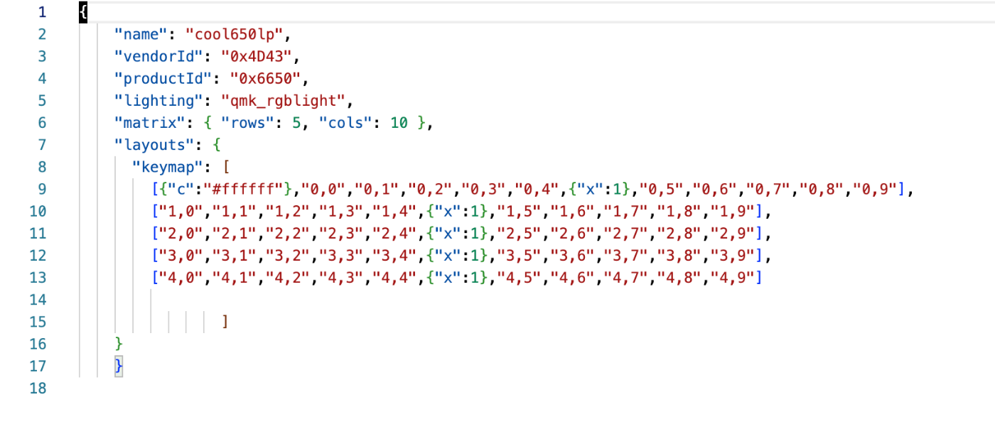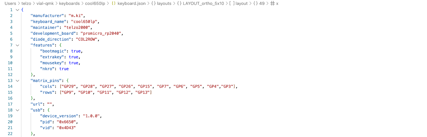 keymapsフォルダ内のvailフォルダを設けて、そこに、vial.jsonファイルを作りました。