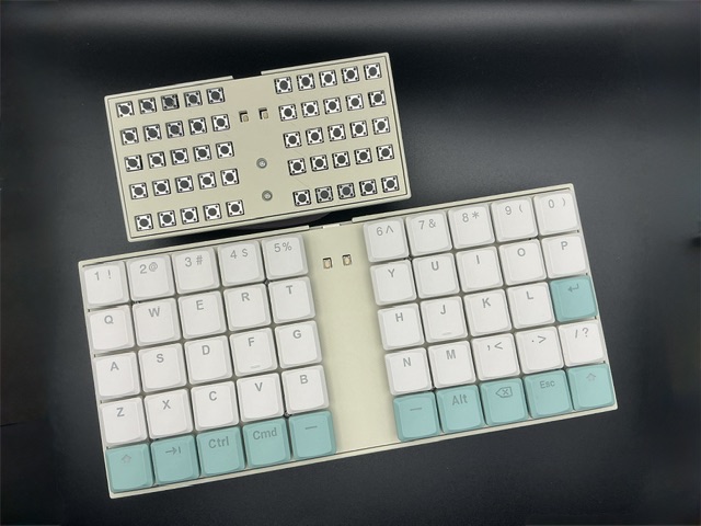 トッププレートとボトムケースを一緒に印刷始めてから4時間ぐらいで終了しました。出来上がりが、下の画像です(KEEB_PD_R280で使用したもの)。