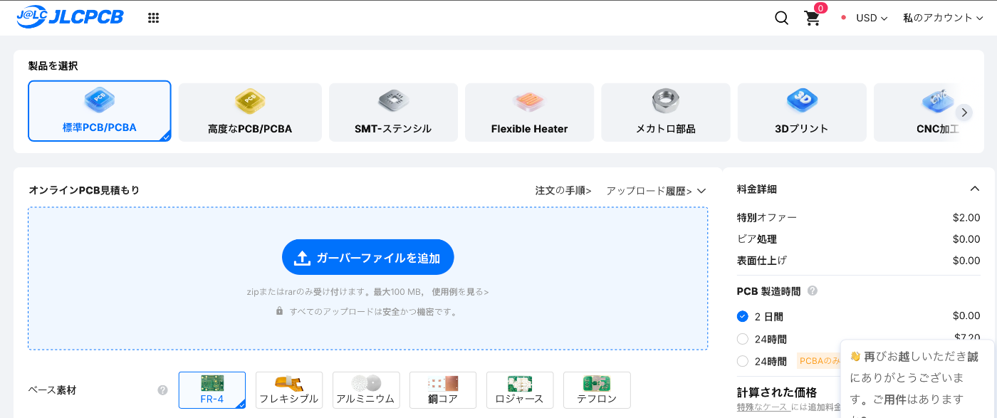 JLCPCBのサイトにいきます。