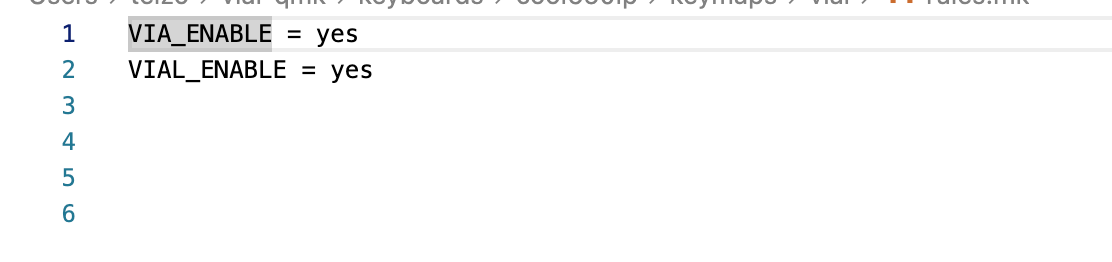ターミナルのvial-qmkでは、