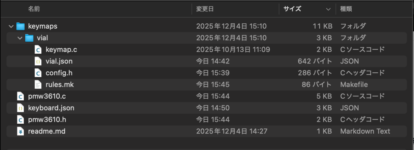 (自分のマックに置いてあるqmk_firmwareはすでに使うことはなく、もっぱら、vial-qmkでファームウェアをビルドしています)