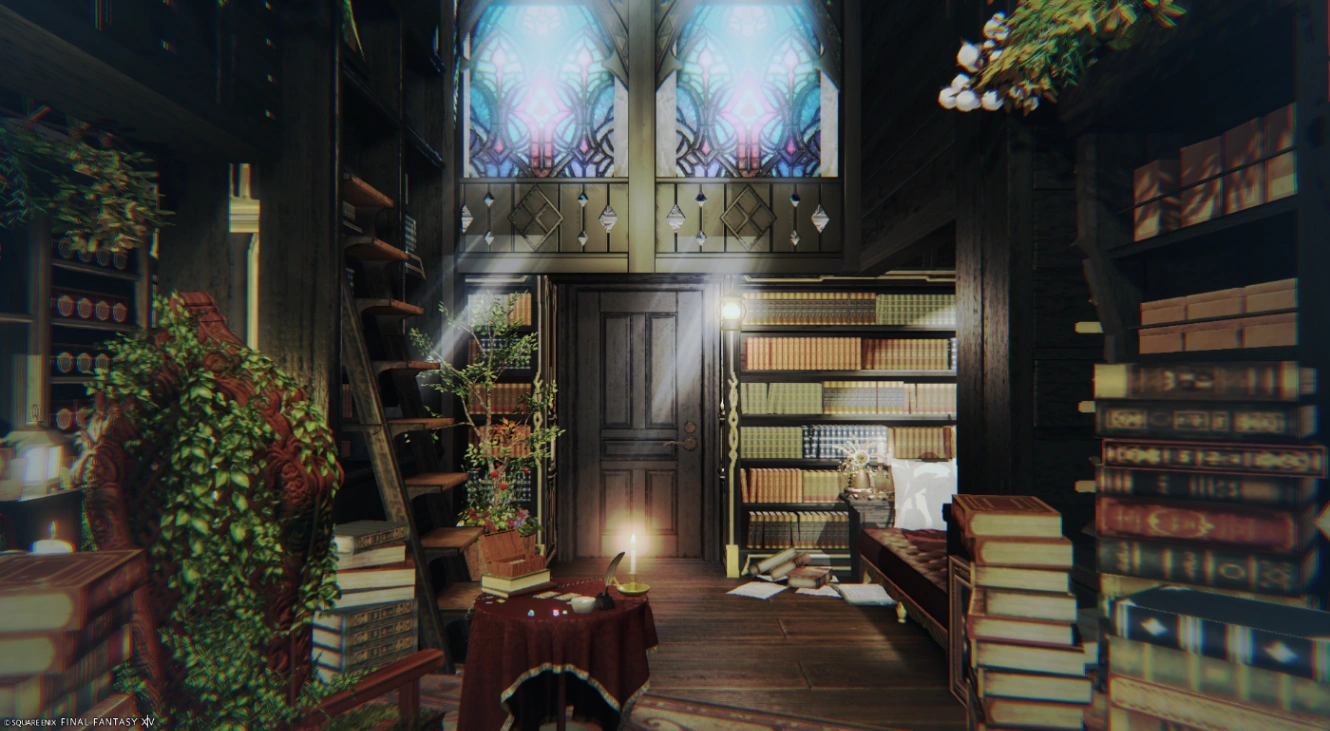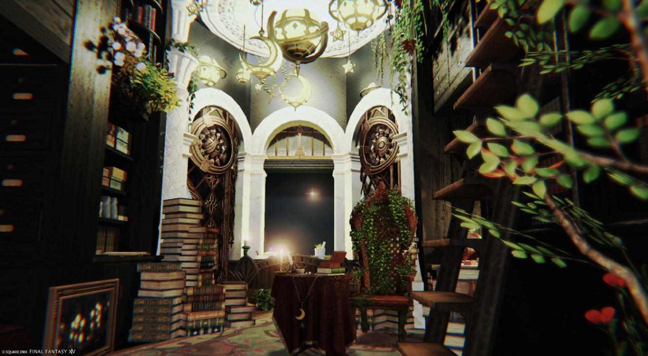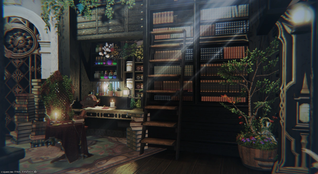 Meteor Ramuh ゴブレットビュート9区27番地1号室5/31までの期間限定公開となります、公開終了後住所は削除します。SNS等への記載はしないでください。森の聲の階段から続く部屋の一つ、作業部屋。限定公開するならもう一部屋作っちゃお~~と思って…こちらもちょっとファンタジーな感じにしたかったのとスターシャンデリアを使いたかったのでいつもと違った感じかもしれない。(当社比設置数増えたらもっとごちゃごちゃ汚くしたい!2026年FF14ハウジングMeteor公開中まるハウジングの備忘録 FINAL FANTASY XIV © SQUARE ENIX