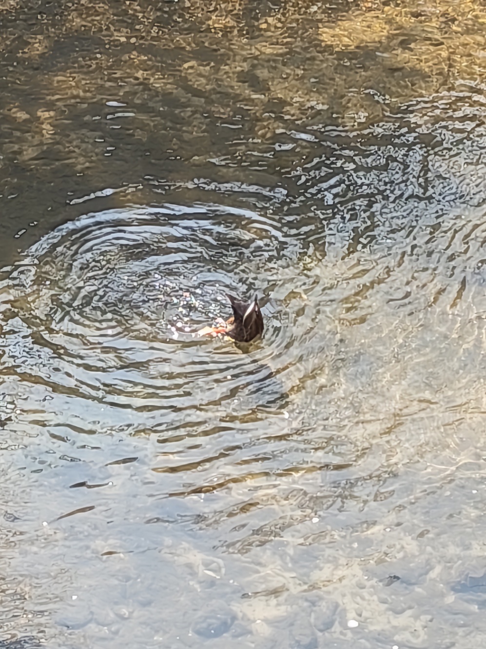 鴨がひっくり返っていた