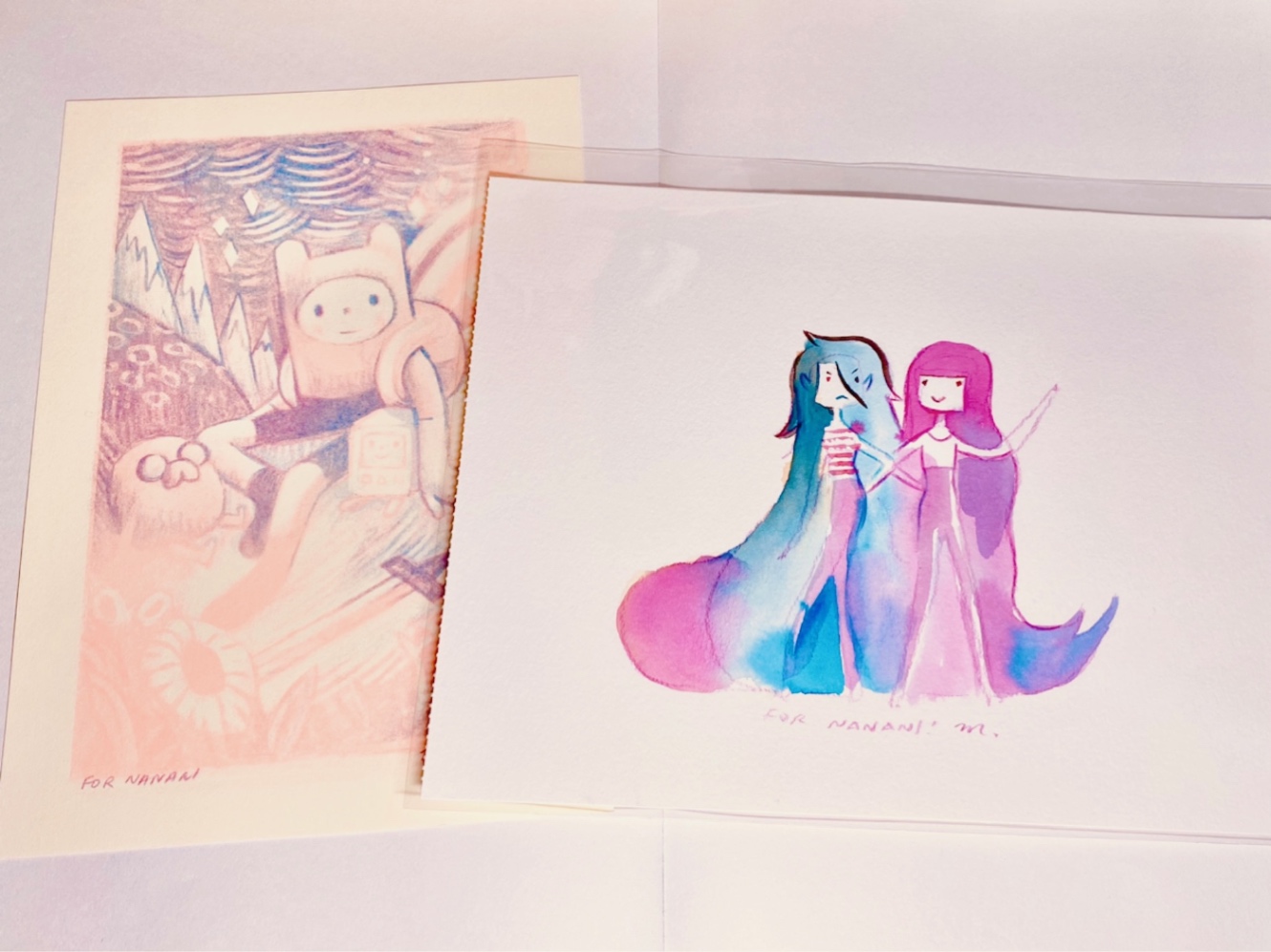 完成までの過程を拝見できてまた心臓がドキドキする。どんどん描かれて行く二人が本当に本当にかわいいし水彩のにじみの美しさに目を奪われる。とても貴重で幸せな体験だった…。