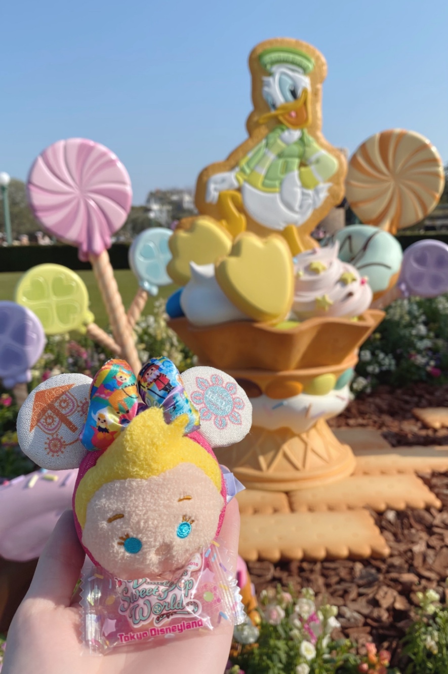 お昼のパレードが始まりそうで焦りながら移動。キャストさんからパルパルのキャンディーもらった🍬かわいい