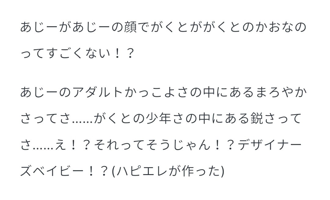 ・Eden:うたうんめ~~~ 大御所が面白くなっちゃうリアルな感じが楽しかった かっこいいただひたに 内田雄馬さんはソロのライブも行ったことがあるので贔屓目もあるけどかわいくてかっこよくて、なにより歌が上手い あとおひいさんって、ほんとうに世界の中心にいる最高のアイドルなんだってうれしくなっちゃった あの花道でてきたときね