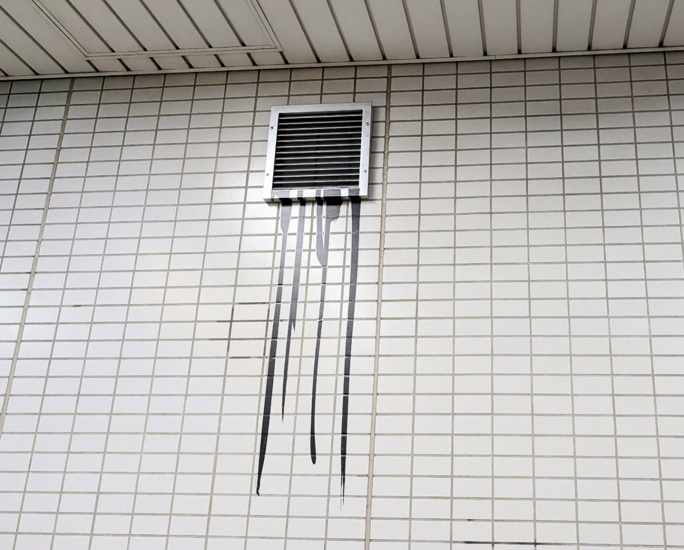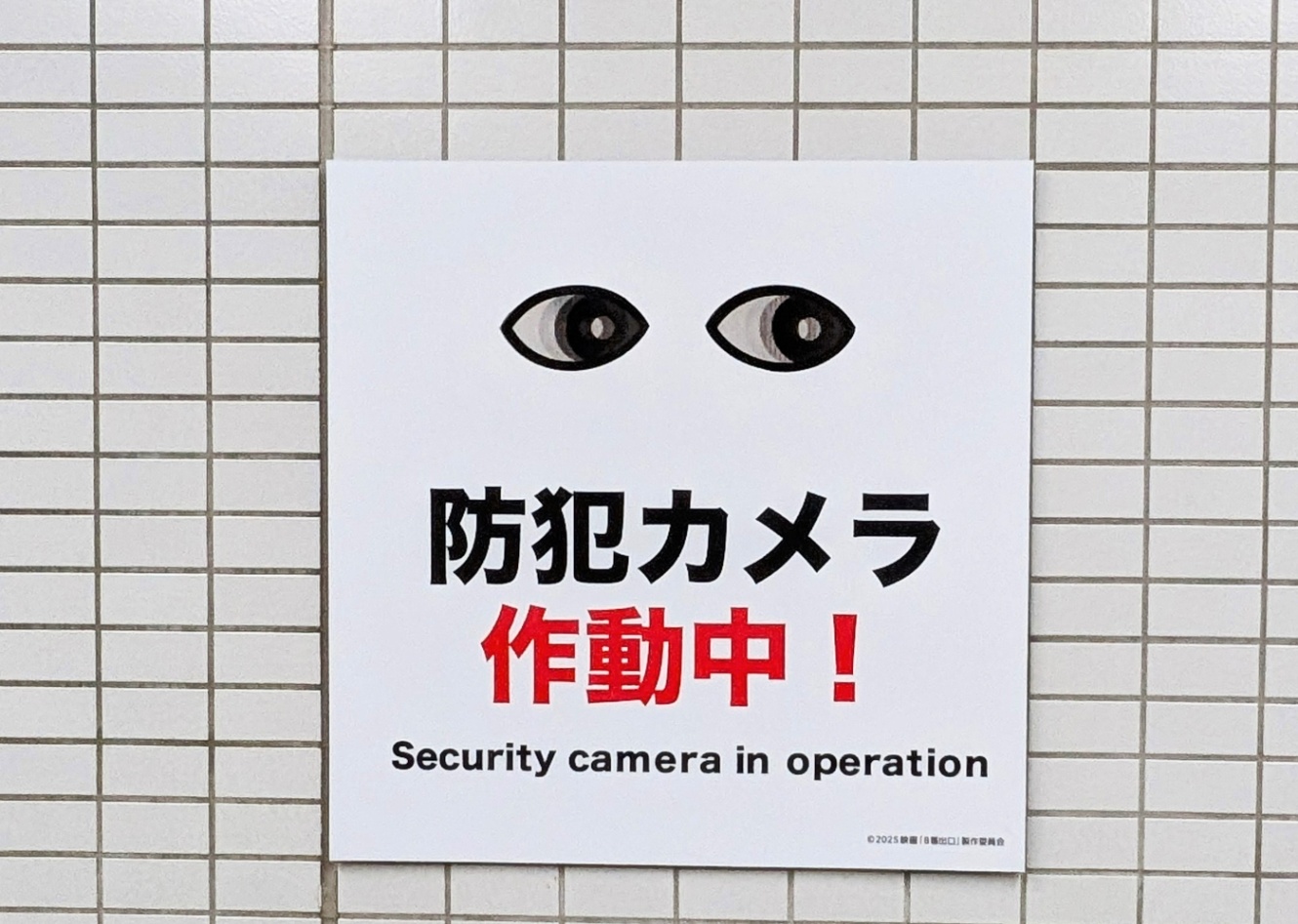 うおーーー!ゲームの異変が現実に!✨ポスターの眼はしっかり動く作りになっていました。最高!インパクトある【禁煙】の貼り紙が目につきがちですが、真ん中にドアノブがある異変も現実で見るとより違和感あるのが凄いです。