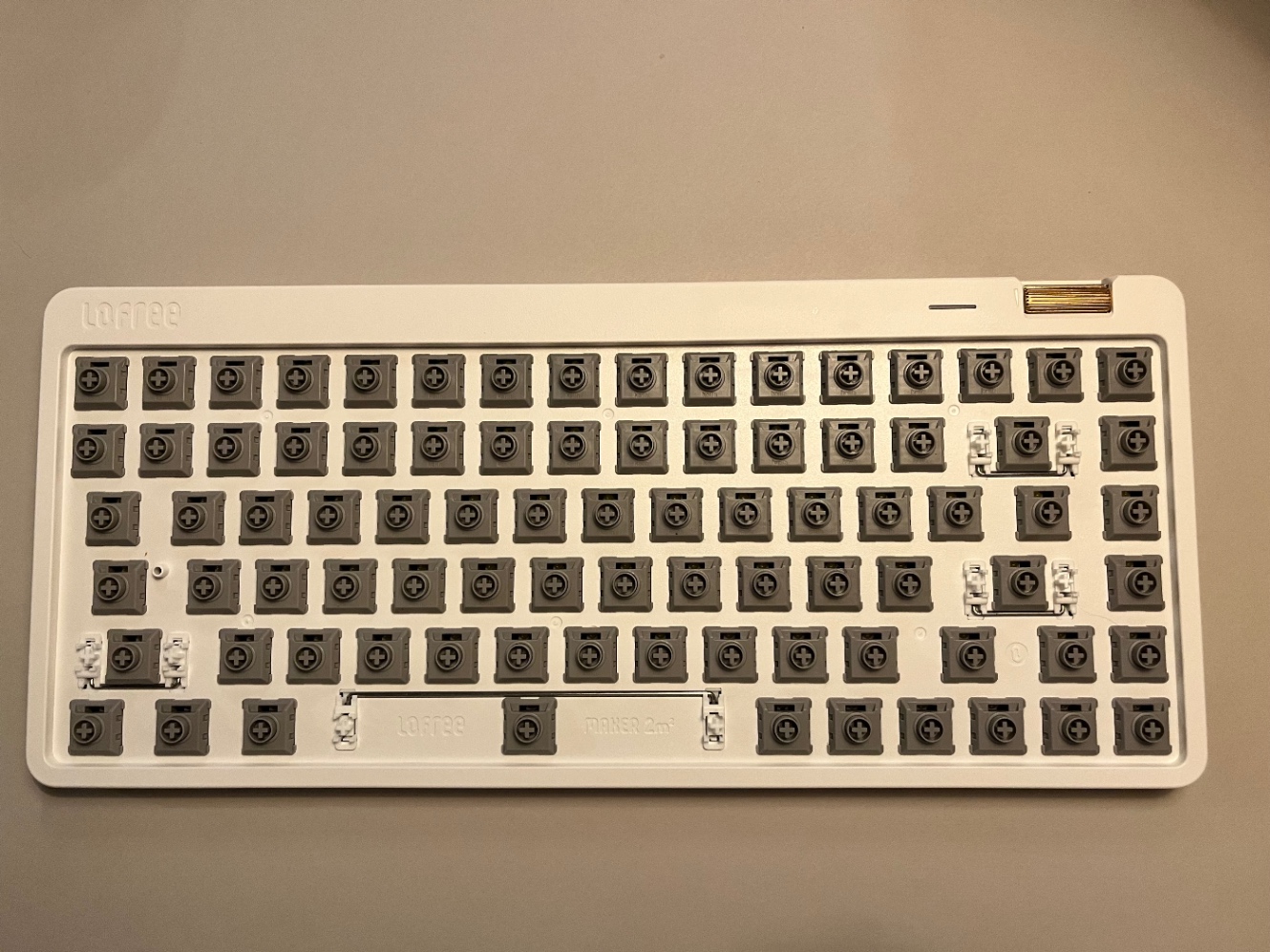 デフォルトでは Specter スイッチとなっているため、Hades スイッチは別売りを購入し、キートップとスイッチを一度全部外して交換する必要があります。ホットスワップとはそういうものだけど。これがちょっと大変。早期購入特典で Lofree のキートップ・スイッチ交換用の工具がついていたのがよかった。使い方が悪いのかそこそこパワーが必要でした。