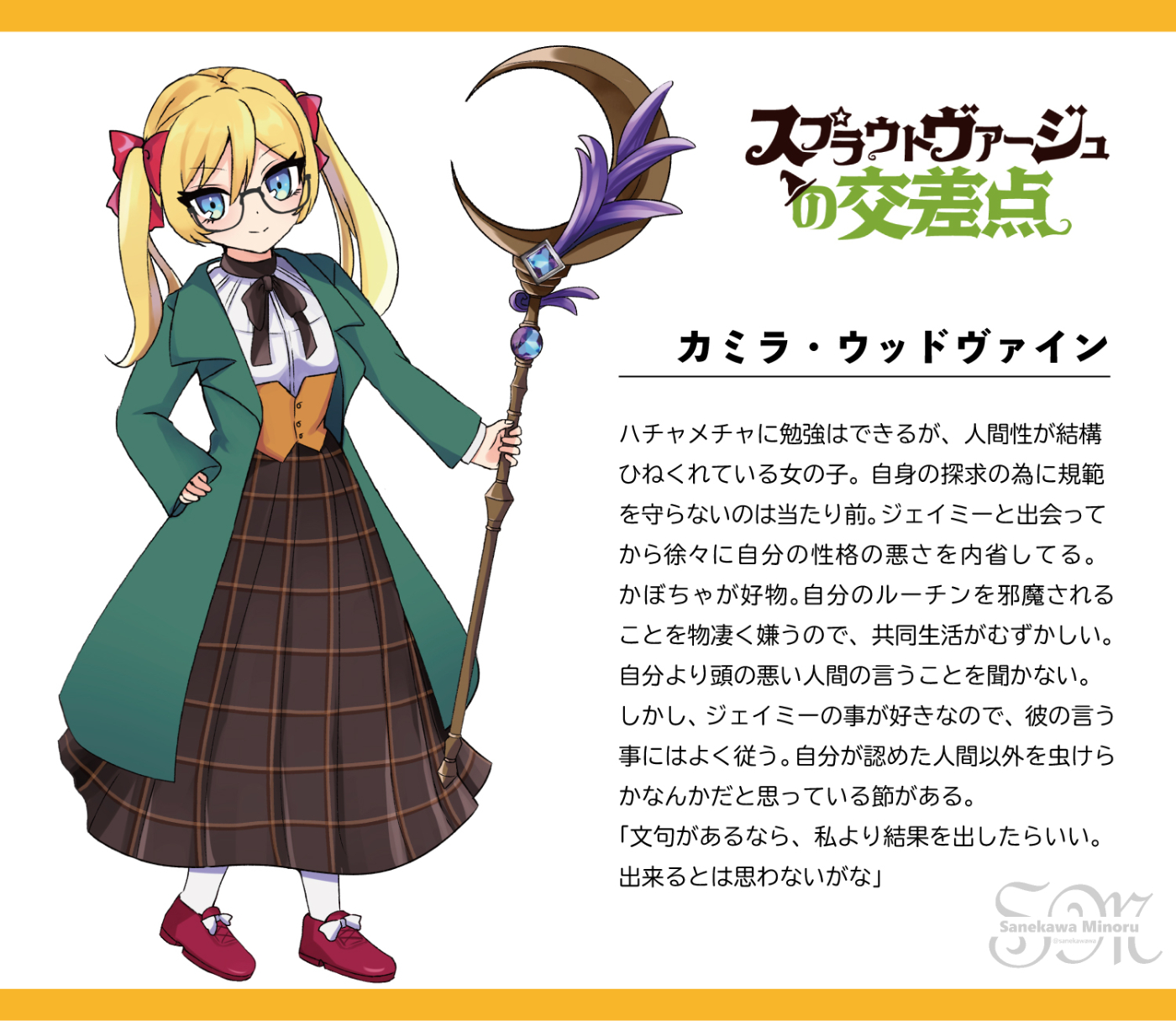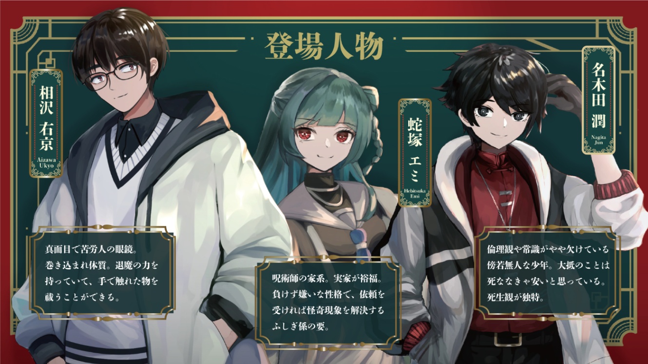私の頭の中で活発に動いてくれる子が「蛇塚エミ」「名木田潤」「相沢右京」なのでこの三人が私の大のお気に入りです。「蛇塚エミ」「名木田潤」「相沢右京」のことだけでも名前覚えていってくださいという感じです。