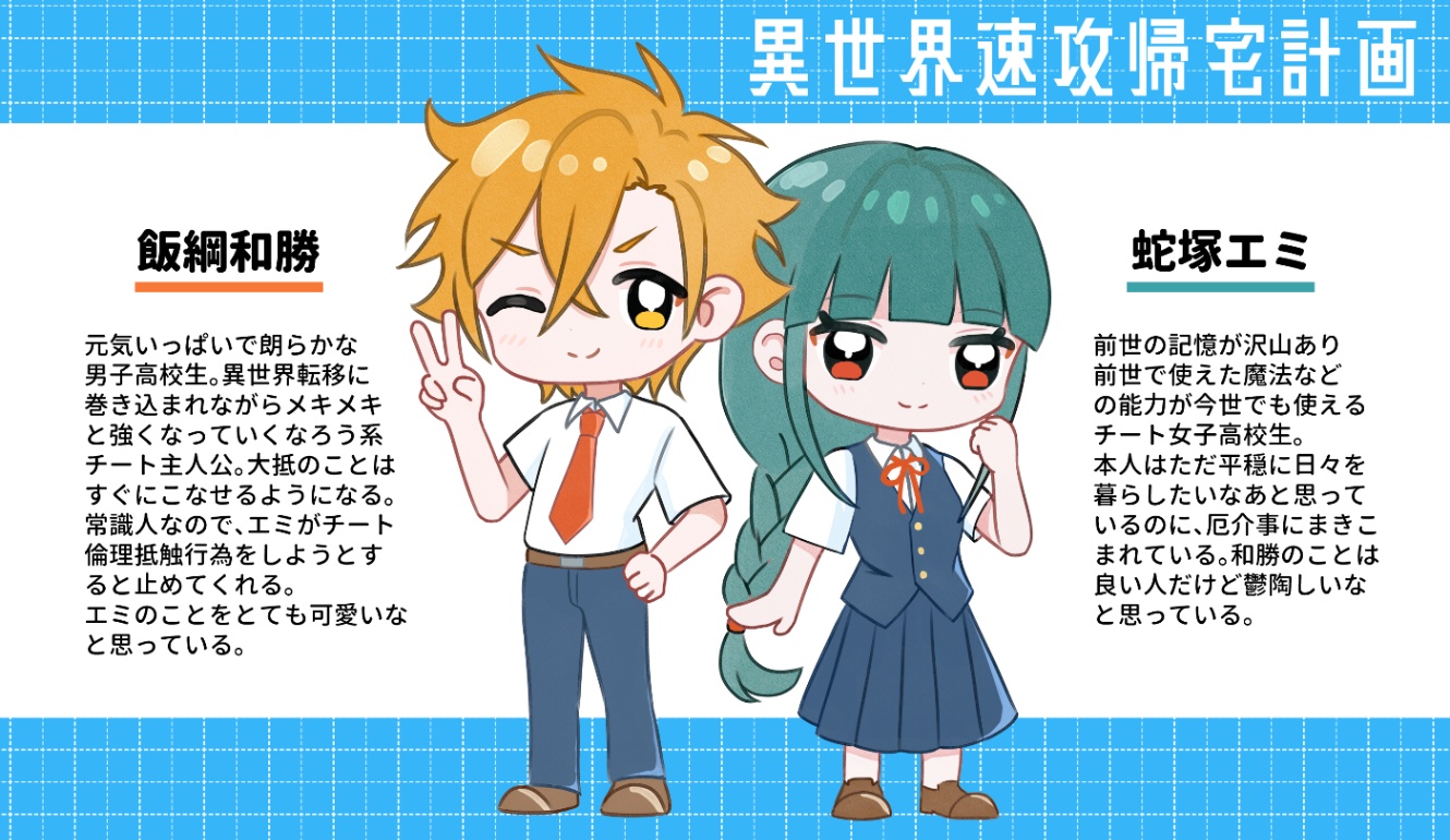 私が一番調子がいい2023年の頃にガッとなんか出てきて止まっている未完の小説です。5万字くらい書いて止まっています。異世界転生流行ってるけど、転移で異世界あるあるをやりながら毎回家にちゃんと帰ってくるやつやったら面白いんじゃないかと思って書き始めました。あと自創作最古参の蛇塚エミちゃんが活躍する創作があったらいいなというので、彼女を最強主人公においています。